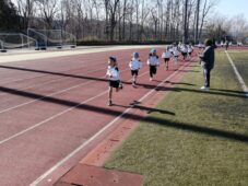 男女別に1周約400mのトラックを2周走りました。保護者の皆様の声援を受け、みんな力いっぱい完走できましたよ。たくさんの応援、ありがとうございました!